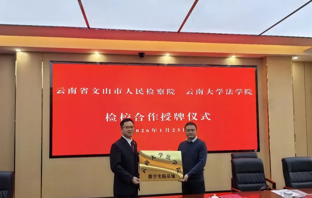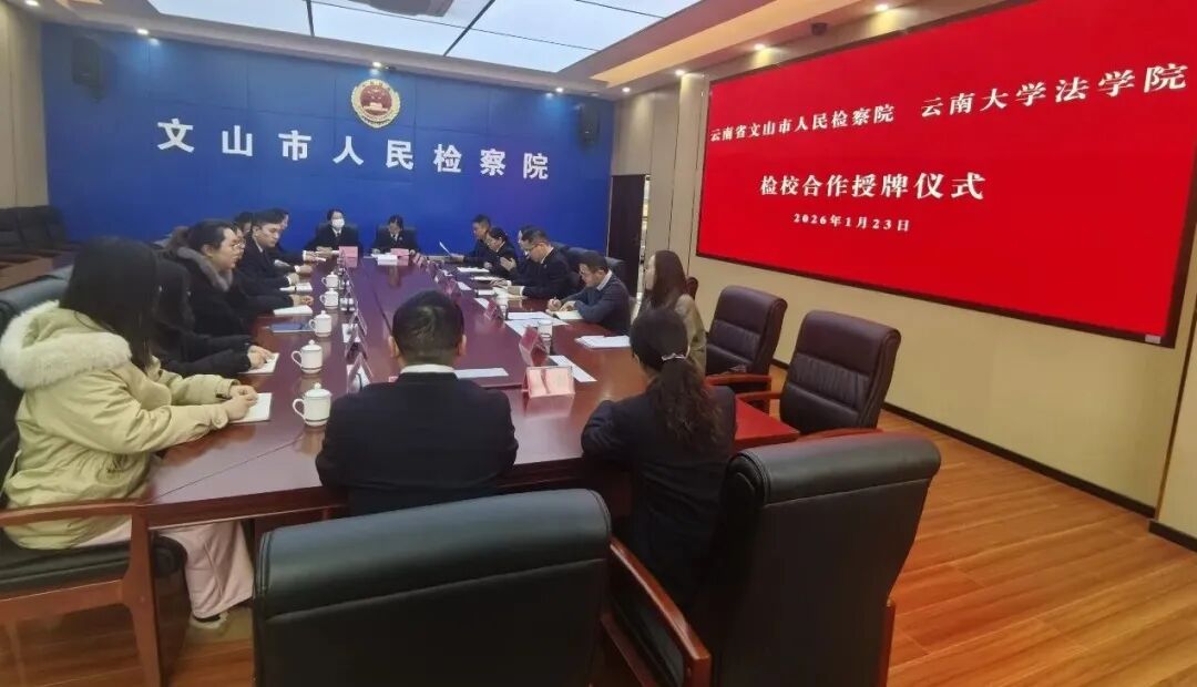 为深入贯彻落实最高人民检察院关于进一步深化新时代检校合作战略部署,1月23日,云南大学法学院与文山市人民检察院联合举办检校合作授牌仪式,学院党委副书记周桐、刘嫡琬老师以及本院领导班子成员、带教检察官、实习生等20余人参加了此次授牌仪式。