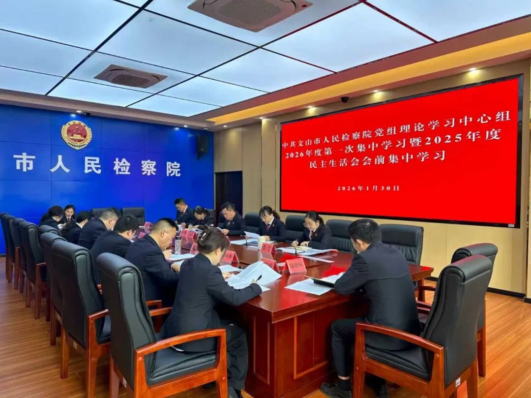 1月30日上午9时,文山市人民检察院举办党组理论学习中心组2026年度第一次集中学习暨2025年度民主生活会会前集中学习。院党组书记、检察长沈建桦同志主持学习,党组班子成员、科级以上领导干部及相关同志参加了学习。