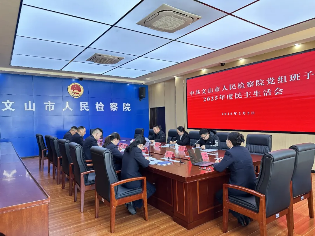 2月5日,文山市人民检察院召开党组班子2025年度民主生活会。会议坚持以习近平新时代中国特色社会主义思想为指导,全面贯彻落实党的二十届四中全会精神,聚焦锲而不舍落实中央八项规定精神、推进作风建设常态化长效化主题,以打攻坚战、持久战的决心和恒心,奋力开创检察工作服务中国式现代化建设新局面。